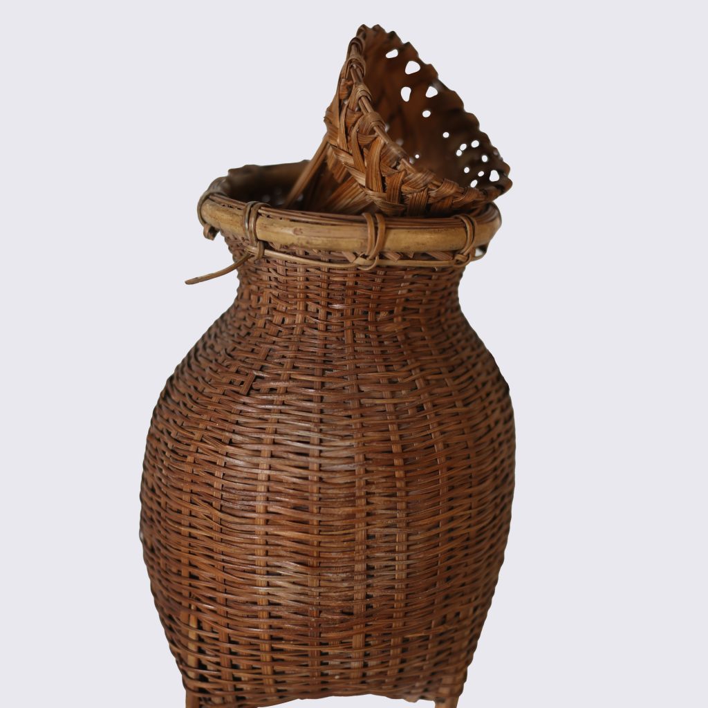 สภาพ : ข้องขาหลุดสูญหาย 1 ขา ตอกไม้ไผ่โครงสร้างหักบางชิ้น หวายล็อคปากข้องฉีกขาด 1 จุด งาแซงบิดเบี้ยวและตอกหักบางชิ้น