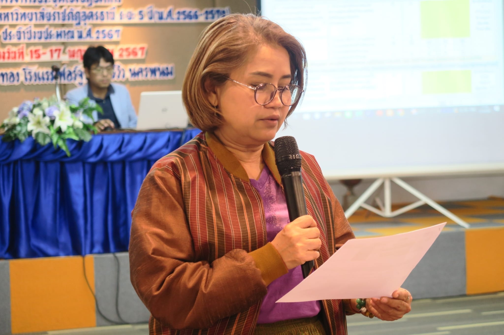 อาจารย์ระพีพรรณ จันทรสา ผู้อำนวยการสำนักศิลปะและวัฒนธรรมมหาวิทยาลัย พร้อมด้วย อาจารย์จุรีรัตน์ ทวยสม รองผู้อำนวยการสำนักศิลปะและวัฒนธรรม ได้รับมอบหมายเข้าร่วม