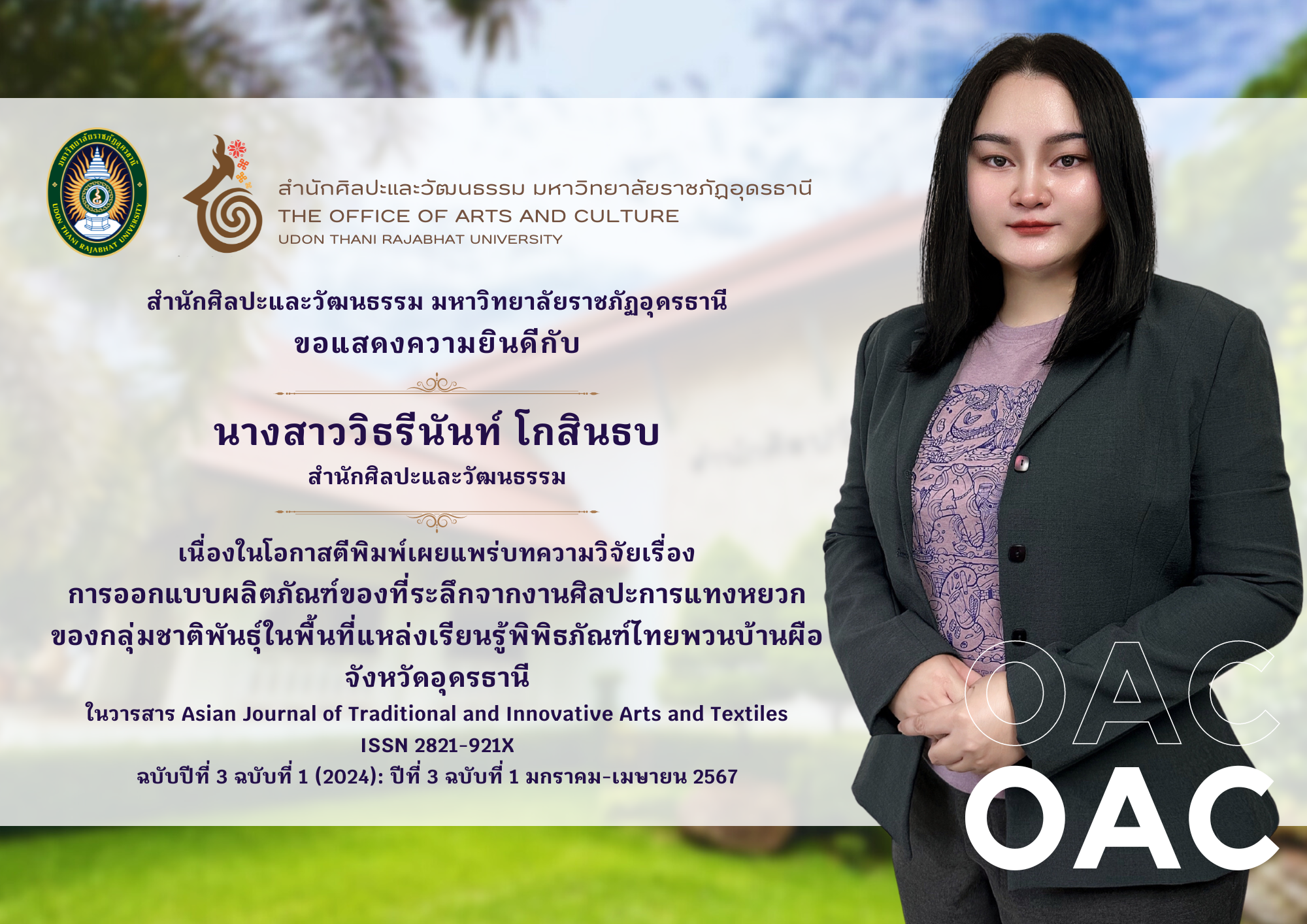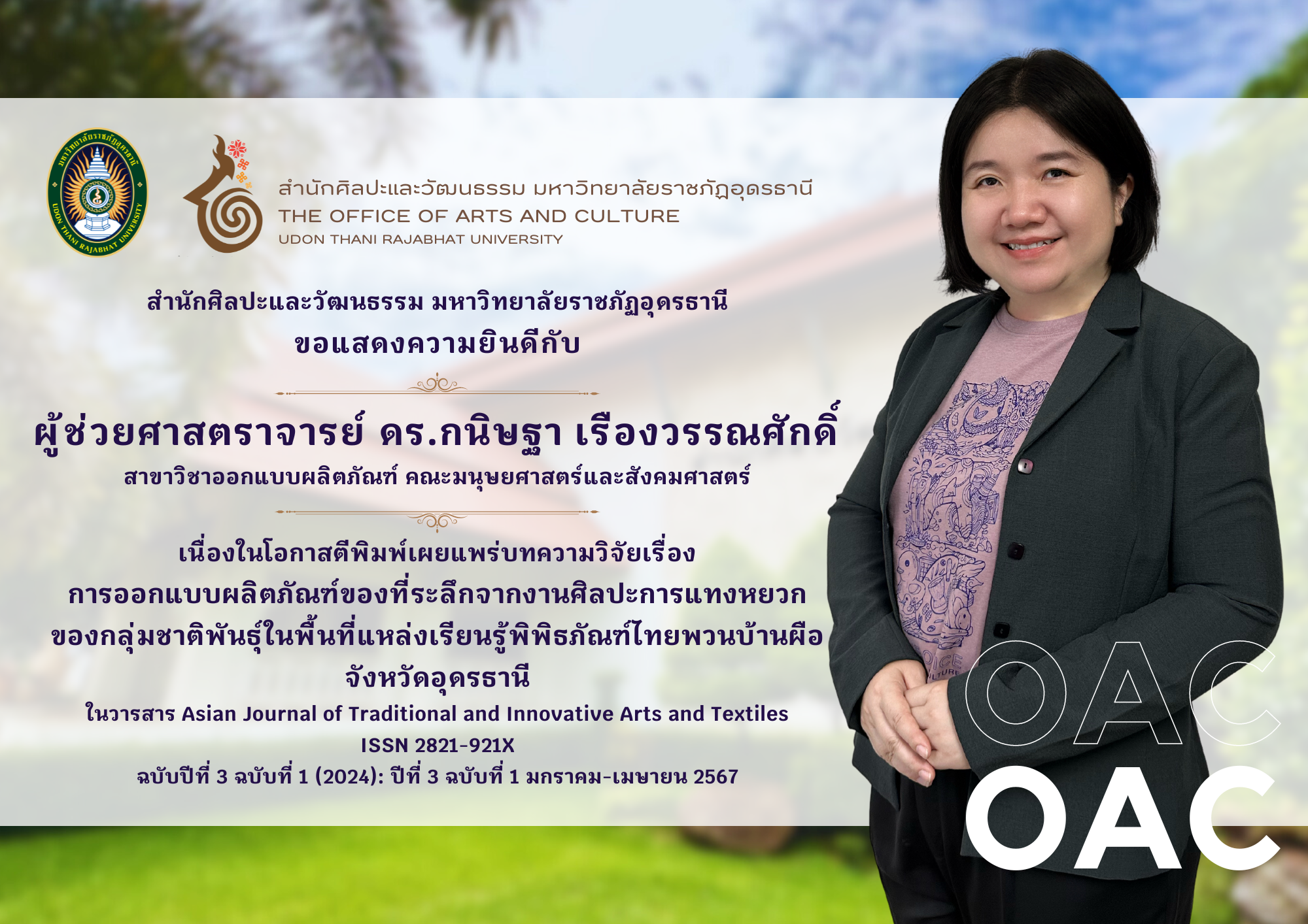ในวารสาร Asian Journal of Traditional and Innovative Arts and Textiles
