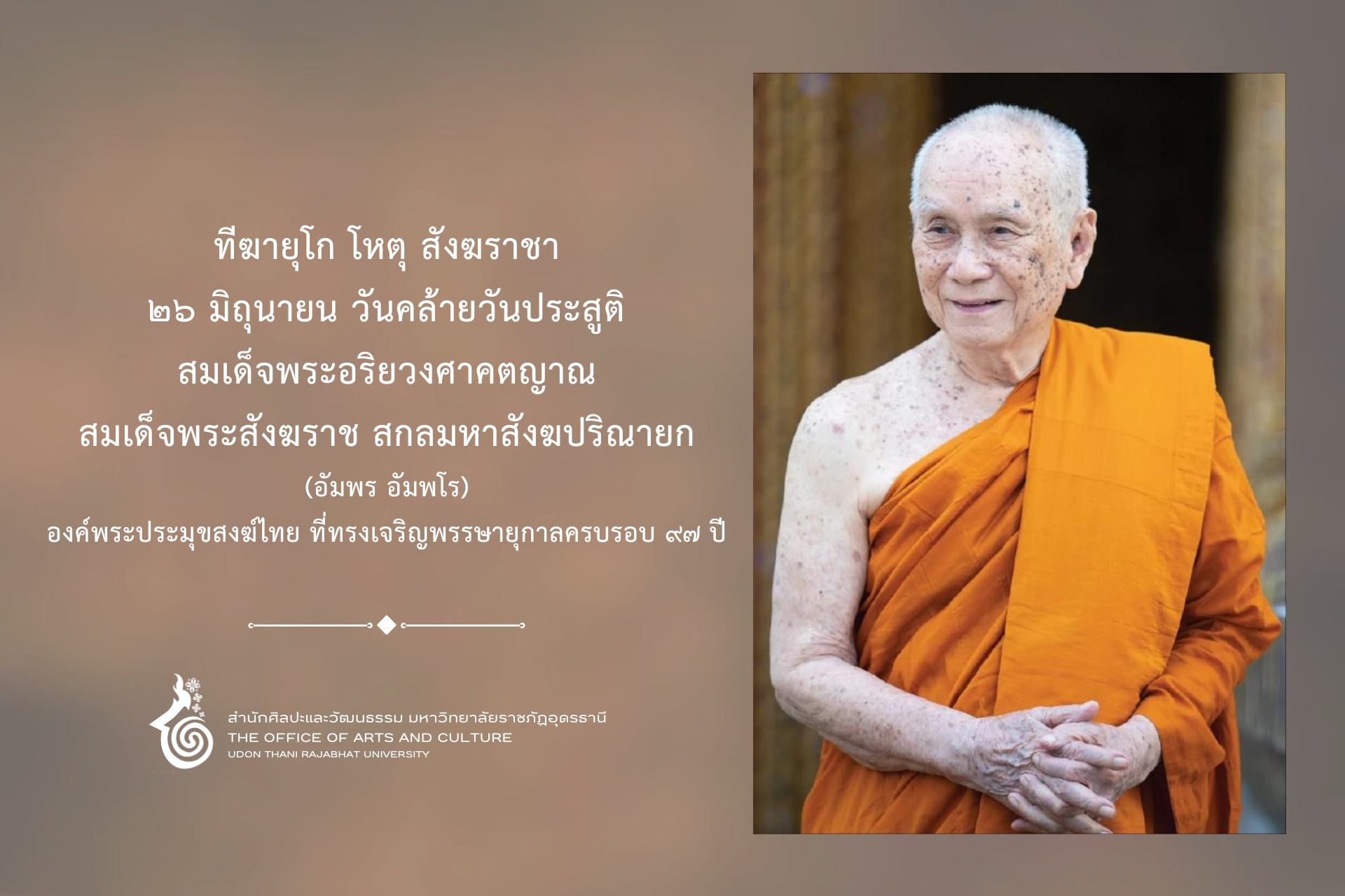 ขอประทานถวายสักการะ เจ้าพระคุณ สมเด็จพระอริยวงศาคตญาณ สมเด็จพระสังฆราช สกลมหาสังฆปริณายก เนื่องในมงคลสมัยพระชนมายุ 97 พรรษา
