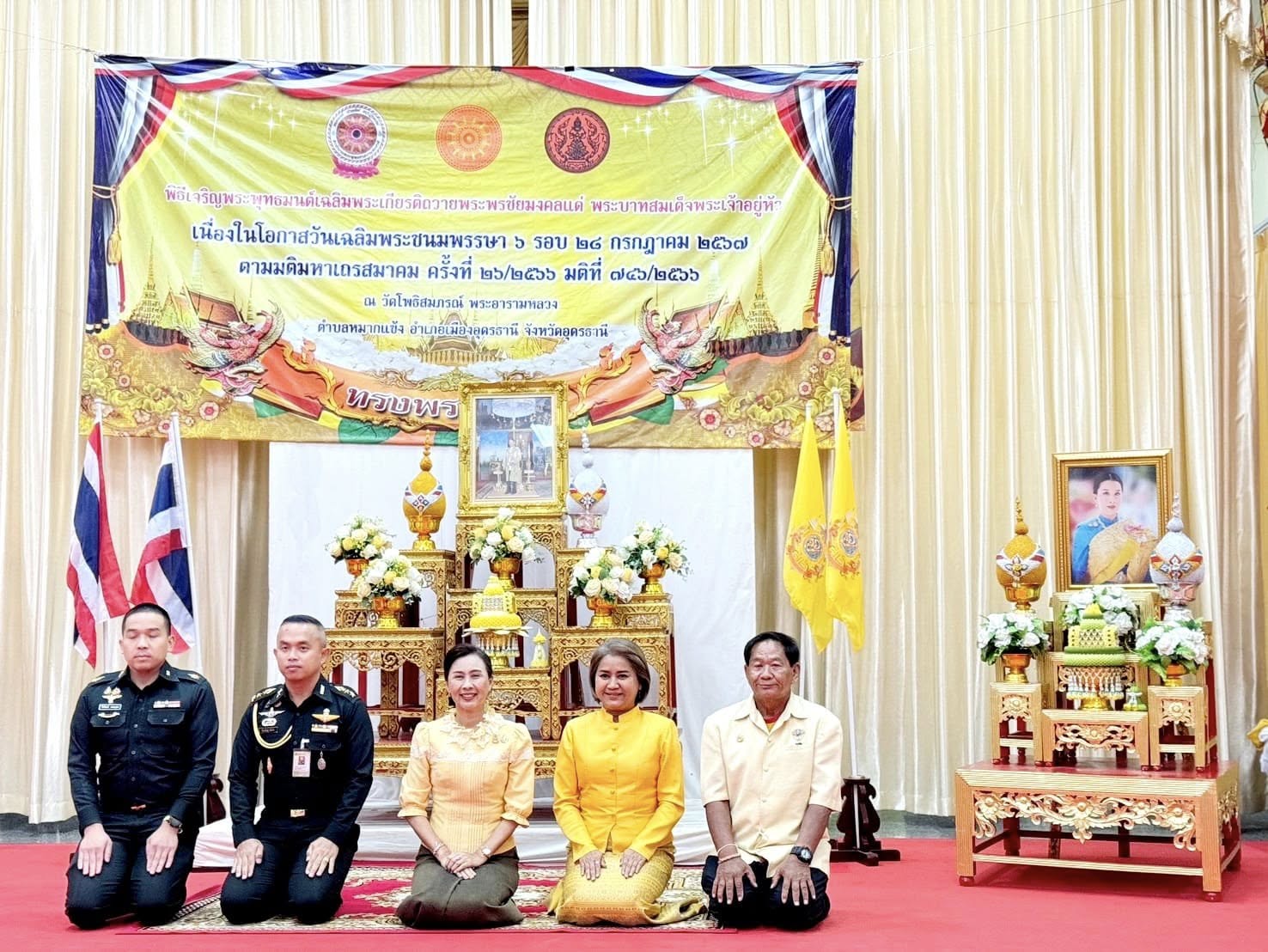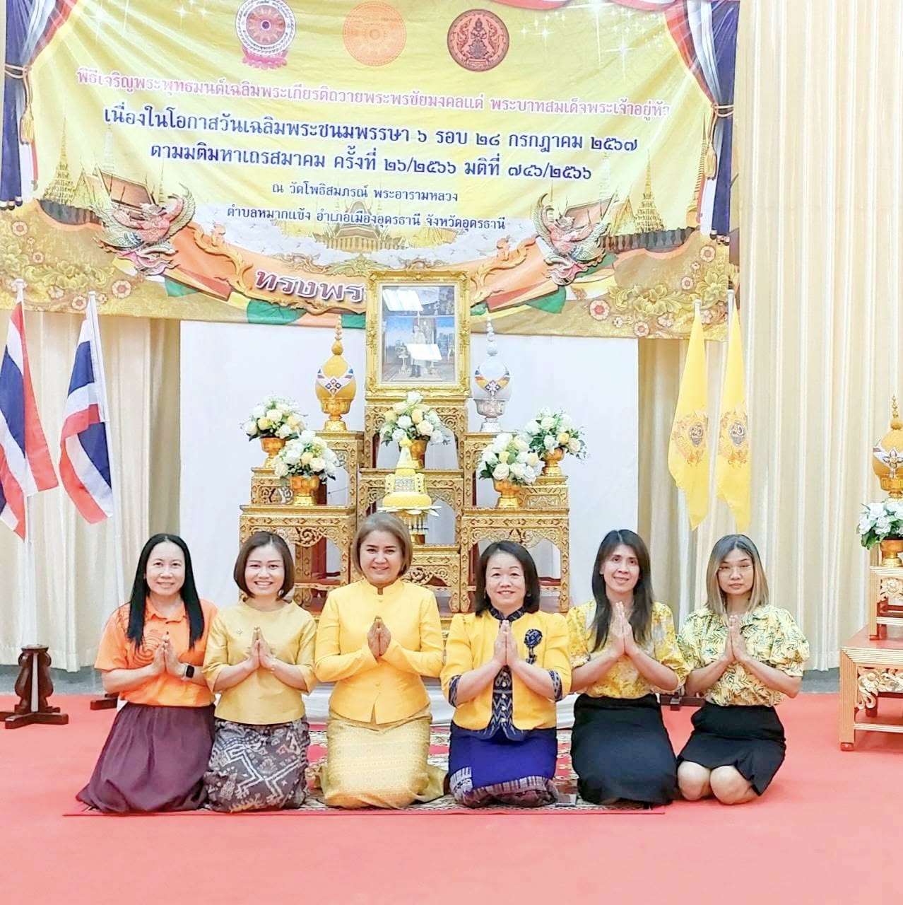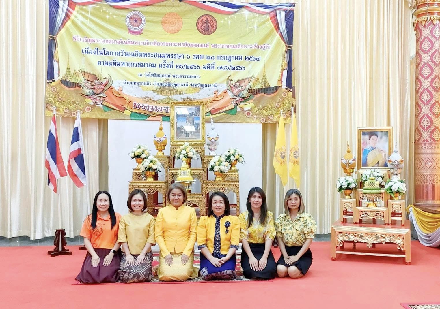 วันที่ ๒๘ พฤศจิกายน ๒๕๖๗ เวลา ๑๖.๐๐น. อธิการบดี มอบหมายให้ ผู้ช่วยศาสตร์ตราจารย์ระพีพรรณ จันทรสา ผู้อำนวยการสำนักศิลปะและวัฒนธรรม พร้อมด้วยคณาจารย์ ร่วมพิธีเจริญพระพุทธมนต์เฉลิมพระเกียรติถวายพระพรชัยมงคลแด่ พระบาทสมเด็จพระเจ้าอยู่หัว เนื่องในโอกาสวันเฉลิมพระชนมพรรษา ๖ รอบ ๒๘ กรกฎาคม ๒๕๖๗ โดยมี นางรณิดา เหลืองฐิติสกุลรองผู้ว่าราชการจังหวัดอุดรธานี เป็นประธานประกอบพิธี พร้อมด้วย หัวหน้าส่วนราชการ ข้าราชการ ภาครัฐ ภาคเอกชน ร่วมพิธีโดยพร้อมเพรียงกัน ณ วัดโพธิสมภรณ์ พระอารามหลวง อ.เมือง จ.อุดรธานี