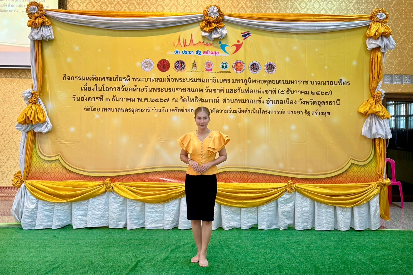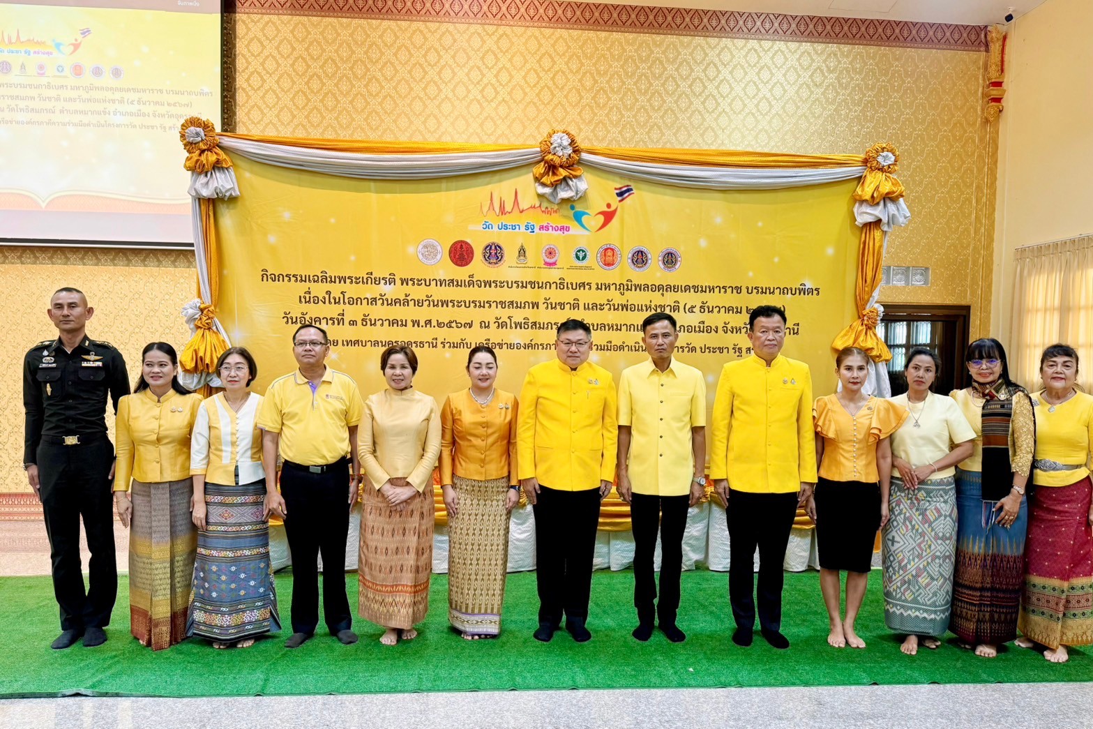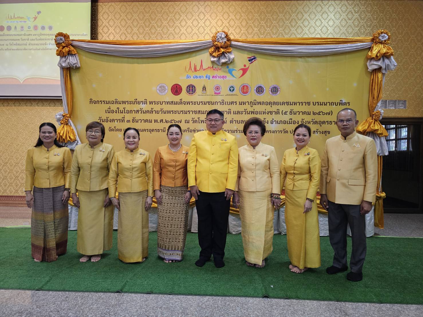 โดย ผู้ว่าราชการจังหวัดอุดรธานี นายราชันย์ ซุ้นหั้ว เป็นประธานในพิธี เพื่อให้พสกนิกรชาวไทยได้น้อมรำลึกในพระมหากรุณาธิคุณอันหาที่สุดมิได้ที่พระองค์ทรงปฏิบัติพระราชกรณียกิจนานัปการ ในการบำบัดทุกข์ บำรุงสุขให้พสกนิกรชายไทยของพระองค์ให้มีความสุข มีคุณภาพชีวิตที่ดีขึ้น และร่วมแสดงออกซึ่งความจงรักภักดีต่อสถาบันพระมหากษัตริย์