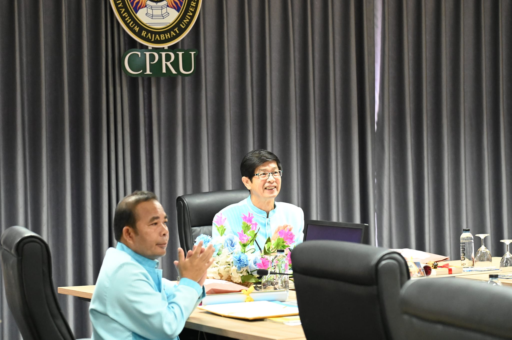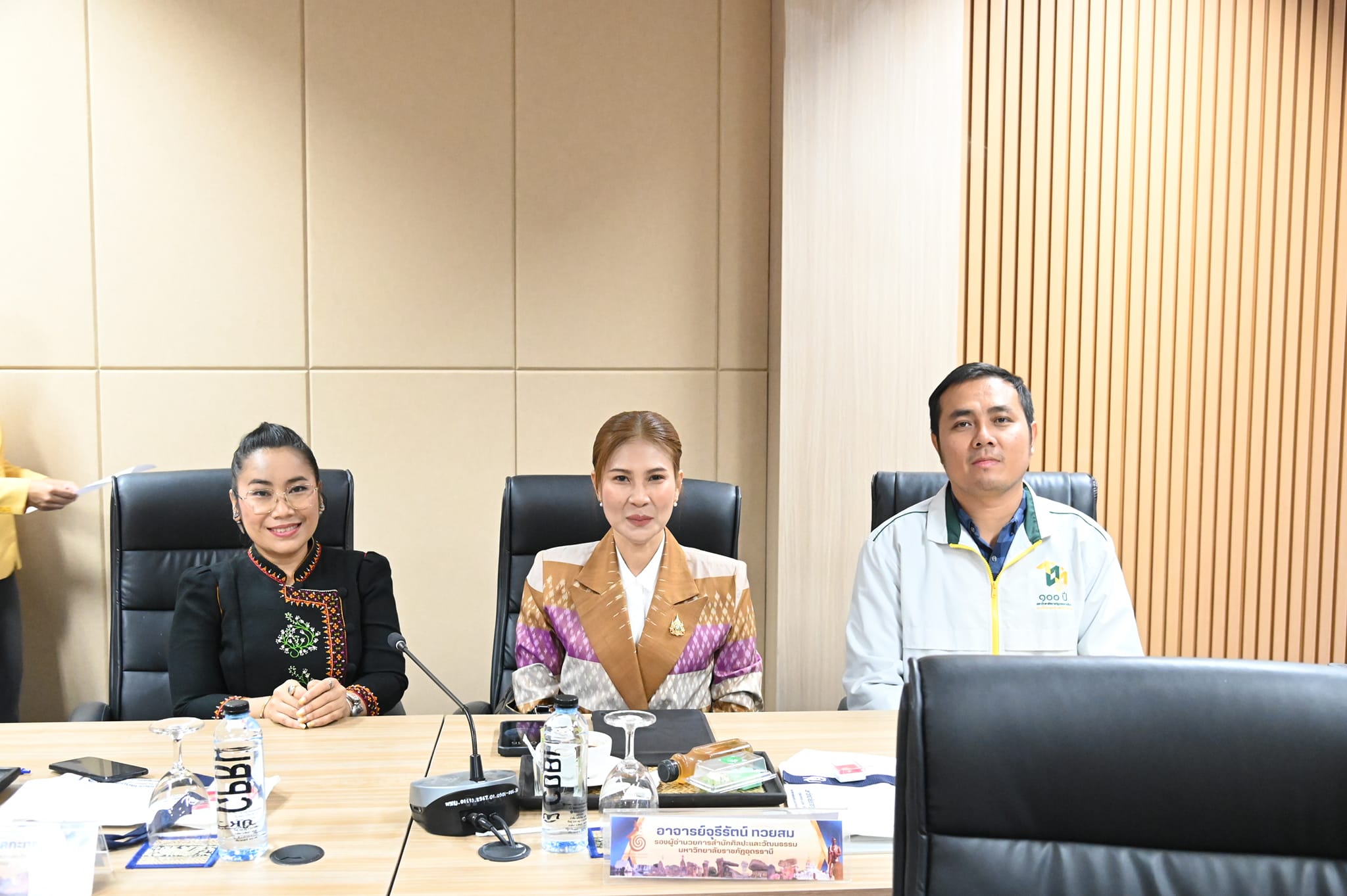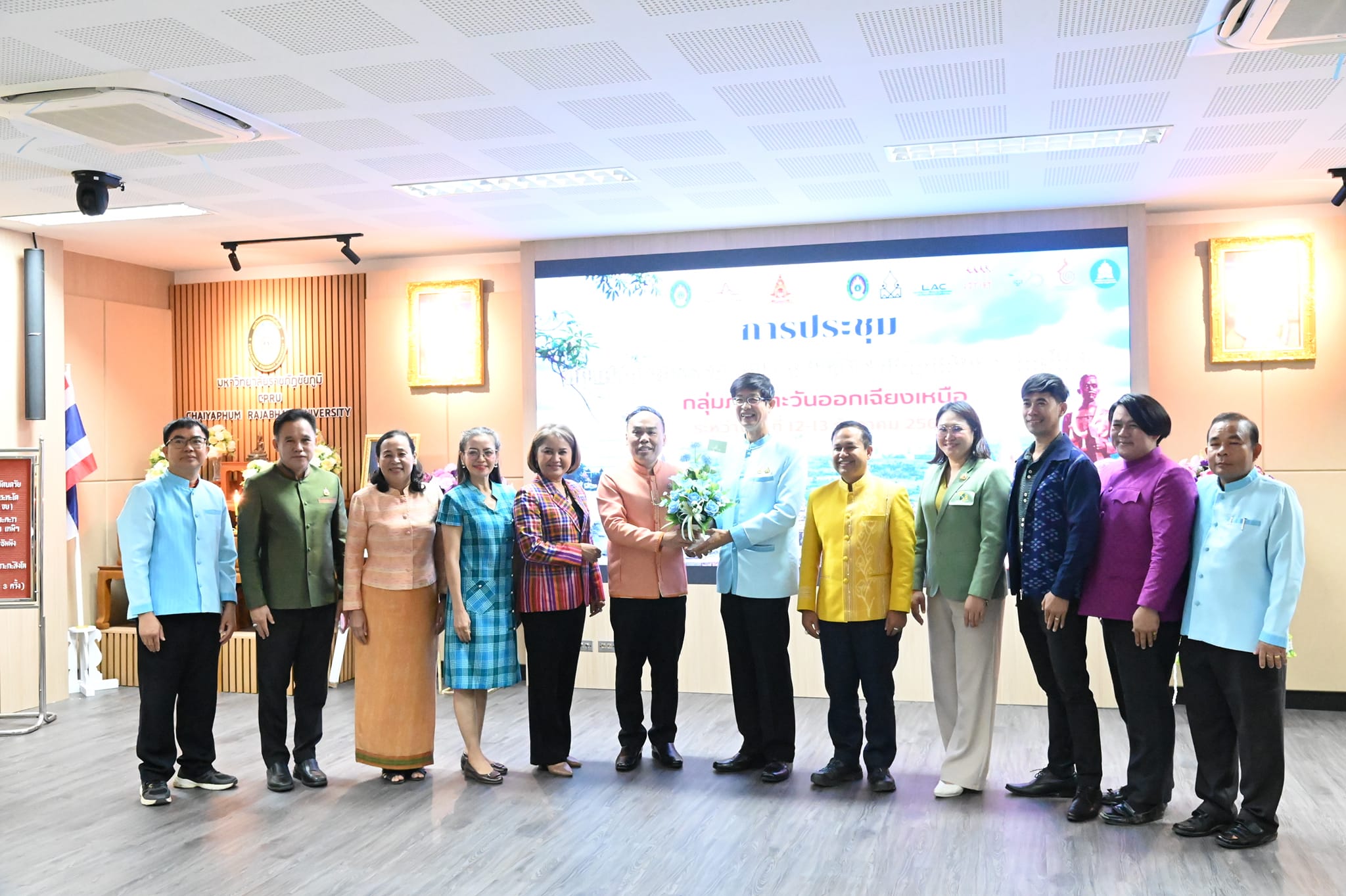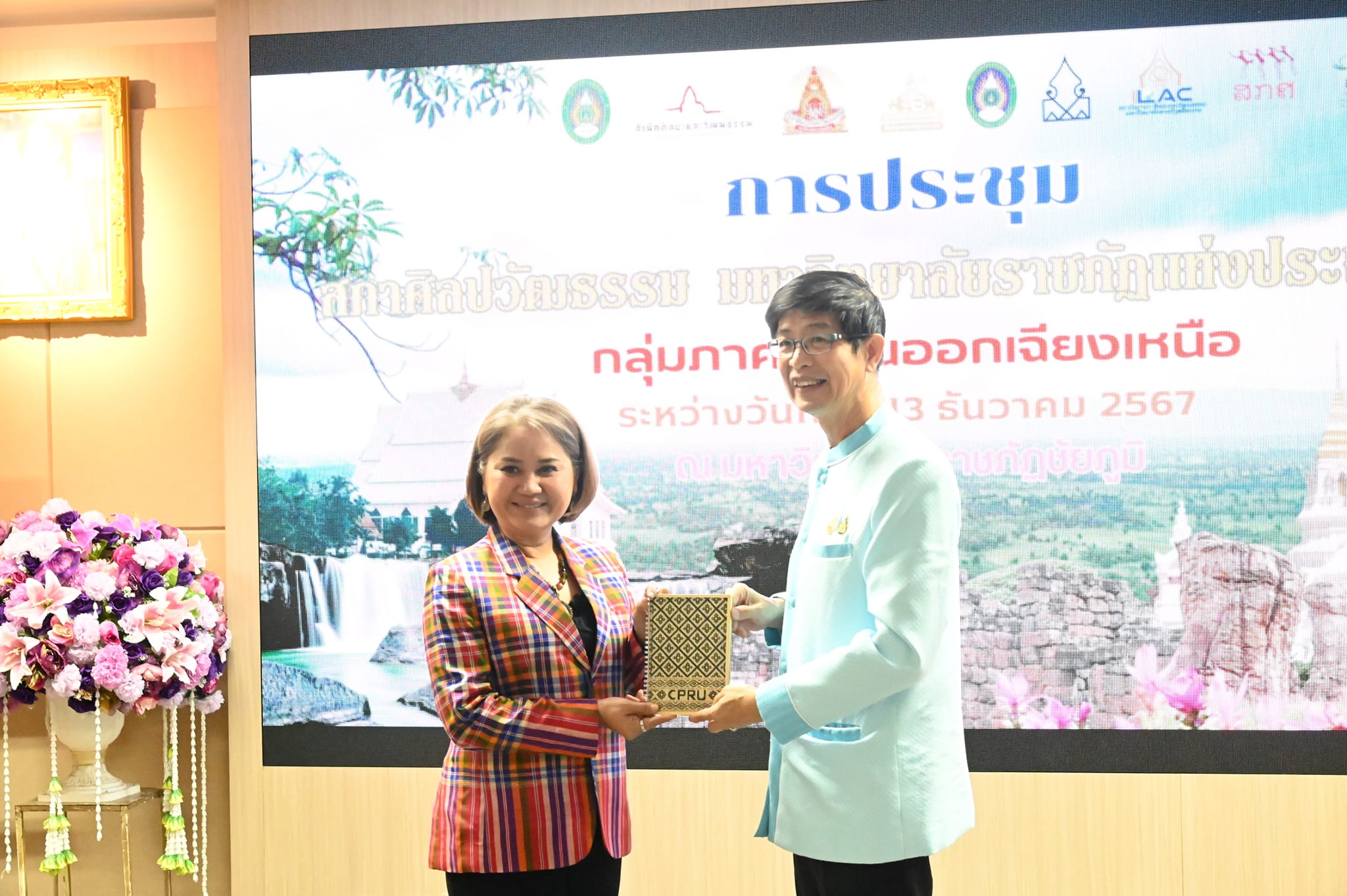 ผู้ช่วยศาสตราจารย์ระพีพรรณ จันทรสา ผู้อำนวยการสำนักศิลปะและวัฒนธรรมมหาวิทยาลัยราชภัฏอุดรธานี พร้อมด้วย อาจารย์จุรีรัตน์ ทวยสม รองผู้อำนวยการสำนักศิลปะและวัฒนธรรม ร่วมประชุมสภาศิลปะและวัฒนธรรม มหาวิทยาลัยราชภัฏแห่งประเทศไทย กลุ่มภาคตะวันออกเฉียงเหนือ ในวันที่ 12 ธันวาคม พ.ศ.2567 ณ มหาวิทยาลัยราชภัฏชัยภูมิ พร้อมรับช่อดอกไม้แสดงความยินดีในตำแหน่งวิชาการ