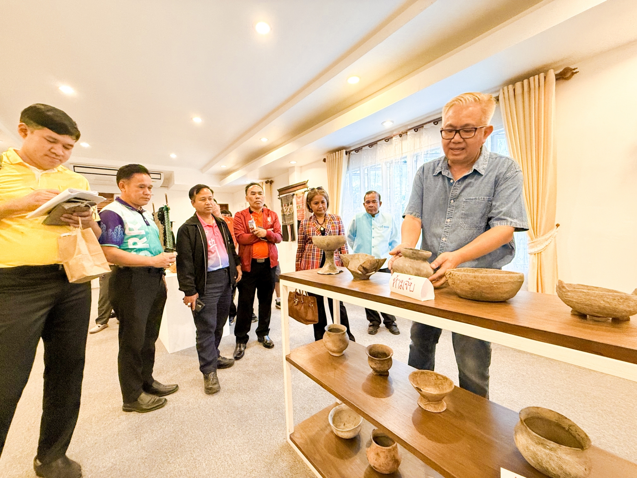 ๔. เข้าชมพิพิธภัณฑ์ผ้าโบราณชัยภูมิ KOMGRISH” หรือ “เฮือนคำมุ” ก่อตั้งโดย อาจารย์เอ๋-คมกฤช ฤทธิ์ขจร ศิลปินร่วมสมัยแห่งชาติ ทายาทพระยาแล จังหวัดชัยภูมิ นักอนุรักษ์ผ้าไทยที่มีความชื่นชอบด้านผ้าไทย ท่านเป็นลูกหลานเจ้าพ่อพญาแลโดยตรง จึงมีมรดกทางประวัติศาสตร์เป็นผ้าทอโบราณสะสมมาตั้งแต่รุ่นสู่รุ่น
