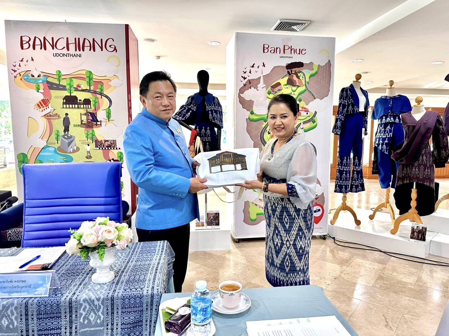 รองผู้อำนวยการสำนักศิลปะและวัฒนธรรม มหาวิทยาลัยราชภัฏอุดรธานี ผู้ช่วยศาสตราจารย์ ดร.กนิษฐา เรืองวรรณศักดิ์ , ผู้ช่วยศาสตราจารย์ ดร.กฤษฎา ดูพันดุง และ ดร.วิลาสินี ขำพรหมราช จากมหาวิทยาลัยเทคโนโลยีราชมงคลอีสาน