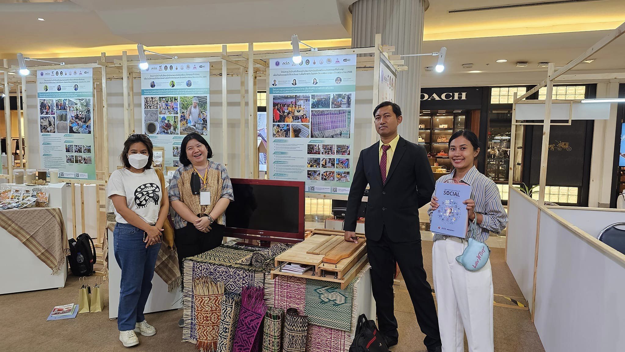 นำเสนอผลงาน “นวัตกรรมชุดอุปกรณ์สร้างสรรค์ลายเสื่อเพื่อพัฒนาผลิตภัณฑ์ชุมชน” ในการแสดงผลงานวิจัยและนวัตกรรมและเวทีเสวนาผลงาน “ทุนนวัตกรรมเพื่อสังคมไปใช้ประโยชน์ในพื้นที่” ปีงบประมาณ 2566 ภายใต้แนวคิด “นวัตกรรมสังคมเพื่อยกระดับคุณภาพชีวิตอย่างยั่งยืน”