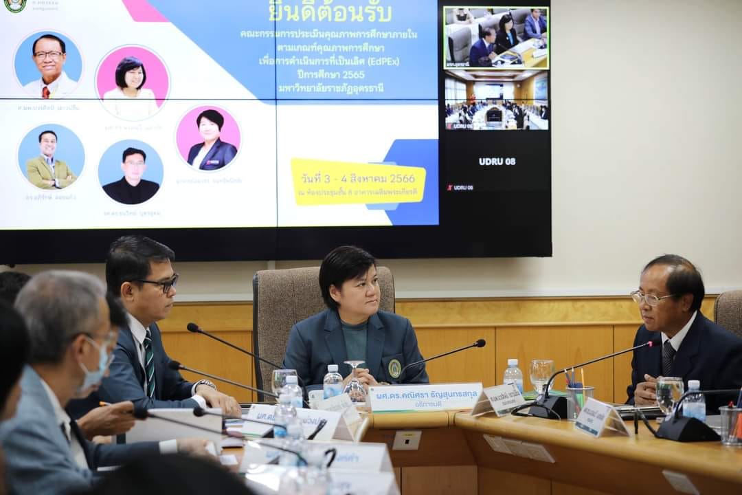 วันที่ 3 สิงหาคม 2566 ณ ห้องประชุมชั้น 8 อาคารเฉลิมพระเกียรติ ผศ.ดร.คณิศรา ธัญสุนทรสกุล อธิการบดี กล่าวต้อนรับคณะกรรมการตรวจประเมินคุณภาพการศึกษาภายในตามเกณฑ์ EdPEx ระดับมหาวิทยาลัย โดยได้รับเกียรติจาก ศ.นพ.บวรศิลป์ เชาว์ชื่น (TQA ASSESSOR) , ผศ.ดร.นวลฉวี แสงชัย (EdPEx ASSESSOR) ดร.อภิรักษ์ ลอยแก้ว (UDRU TQA IOA) , รศ.ดร.ธนวิทย์ บุตรอุดม (UDRU TQA IOA) , อาจารย์สมวรร ธนศรีพนิชชัย (UDRU TQA IOA) ซึ่งการตรวจประเมินในครั้งนี้ ตัวแทนผู้บริหารได้นำเสนอผลการดำเนินงาน ทิศทางของมหาวิทยาลัย และมีการสัมภาษณ์ผู้บริหารจากคณะหน่วยงาน ตัวแทนบุคลากรสายวิชาการ/สายสนับสนุน , ตัวแทนนักศึกษา และสรุปผลตรวจประเมินฯ ตามเกณฑ์ EdPEx พร้อมทั้งให้ข้อซักถาม เสนอแนะเพิ่มเติม ในวันที่ 4 สิงหาคม 2566 ณ ห้องประชุมชั้น 8 อาคารเฉลิมพระเกียรติ